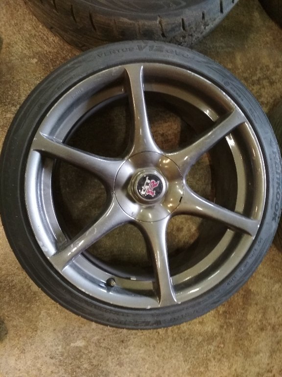 Prodám kola Bnr34 (ze Skylina R34 GTR) 18x9 et30 5x114 včetně všech pokliček. Dvě gumy Kumho Ku36 245/40 ještě na pár trackdayu, druhý dvě Hankook Ventus V12 225/40 minimálně na sezónu. Tři kola pěkná a jedno trochu víc odřené od obrubníku. Kola jsou rovná. Cena 25 000kč. IMG_20180423_161941.jpg IMG_ ...
