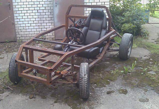 engine je komplet i s gearem a eletrikou, bug je na kolech, predni naprava z malucha, zadni je udelana z predni ze sunnyho GTi, sedacky sunny GTi, vzadu jeste nejsou tlumice idealka pouzit nejaky z bajku, nadrz trabos, pal pumpa S12,.... brzdy vzadu predni GTi v luxus stavu.