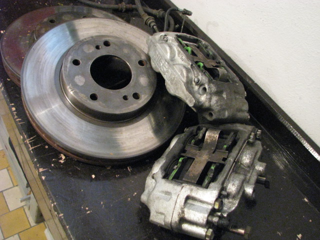 Prodám málo jeté(4-5 TKm)- půl roku na autě- komplet nové koupené čelisti, kotouče a desky EBC Grün-zelené(přední brzdy originál z Nissanu 300 ZX Z32) Kotouče-stav 1A-žádný ještě rand, chlazené průměr 280, tloušťka 30, výška 53,7, děr 5 x 114,3. /Čelisti orig. Nissan 4-pístové/Desky EBC zelené-skoro žádný úbytek.-za super cenu 6.000 Kč Komplet.